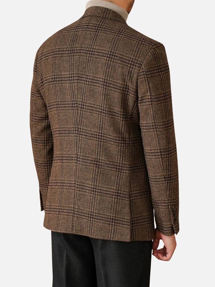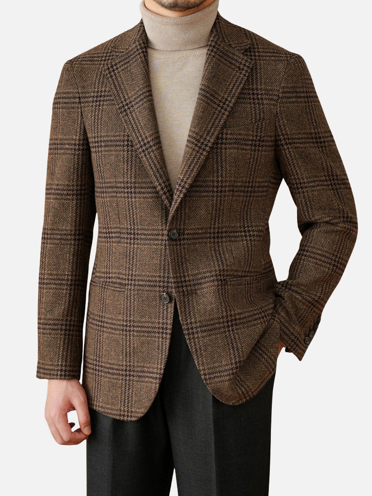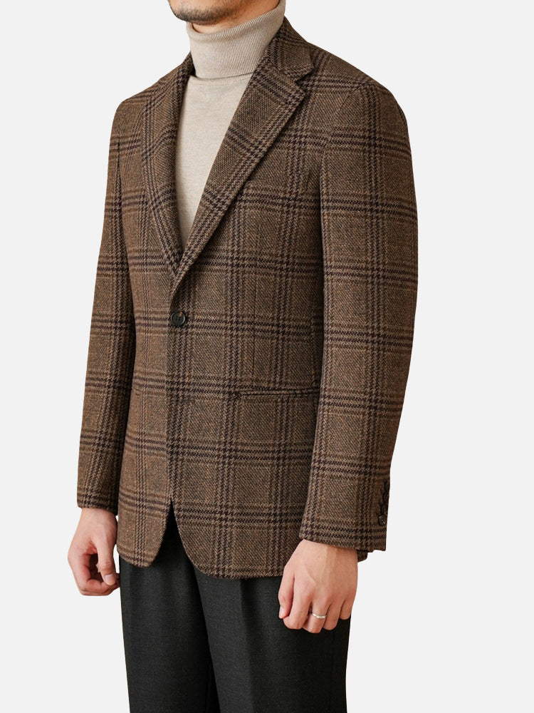 ウール50% プリンス・オブ・ウェールズチェック ジャケット(ブラウン)