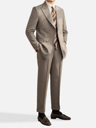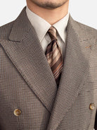 ナポリ仕立てのダブルブレストで、シャープなラインと端正なシルエットを表現。ヴィンテージ感とモダンさを合わせ持ち、クラシックなピークドラペルが滑らかな曲線を描きます。重厚さと優雅さを兼ね備え、フォーマルからカジュアルまで幅広く対応。上品でありながら軽やかなイタリアらしい雰囲気を漂わせます。
