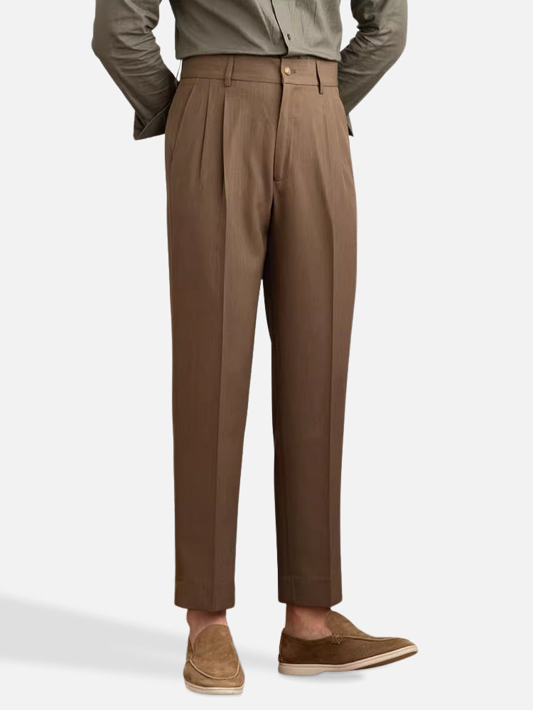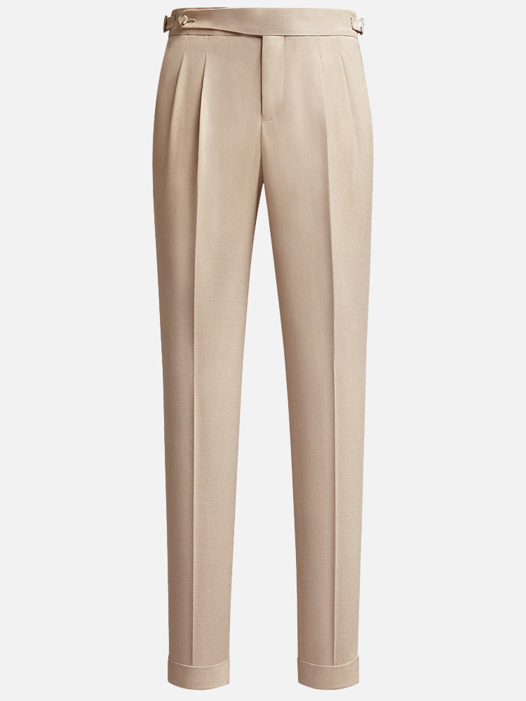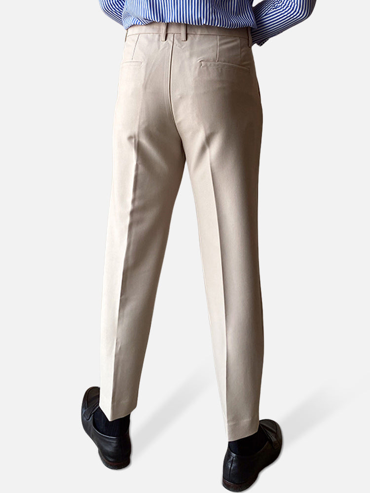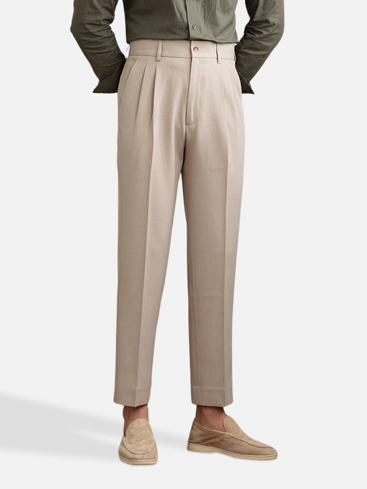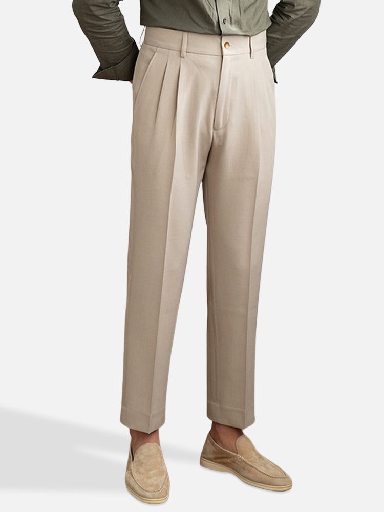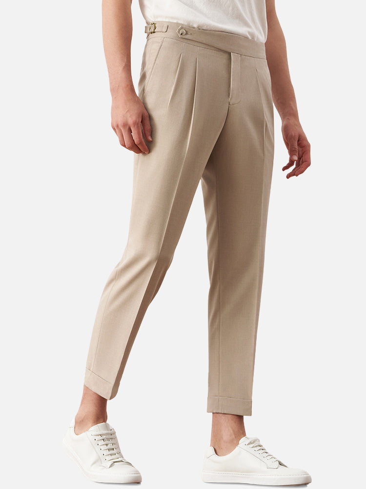 ベージュ ツータック ハイウエストアンクルパンツ