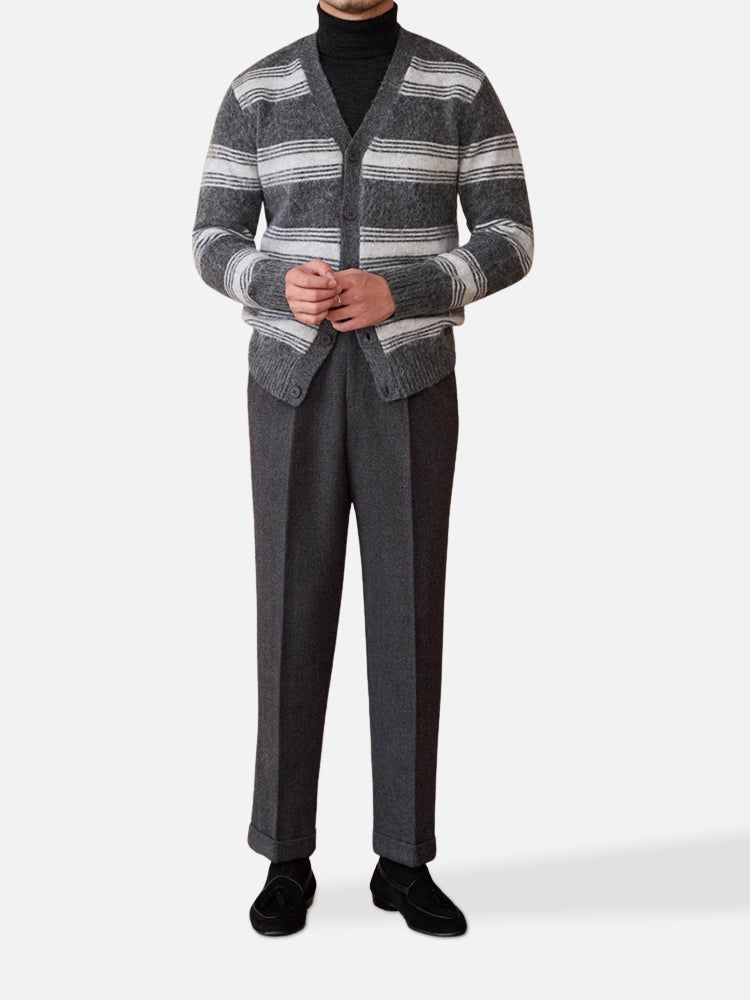 通勤や外出先での温度調節にも活躍する開襟ニット。リラックスした雰囲気を持ちつつ、上品に着こなせるANKELYの定番アイテムです。秋の一枚として最適。