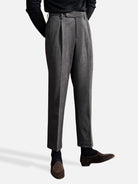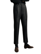 クラシックなストレートシルエットで、裾をわずかに絞り、脚を長く見せつつ全体のラインを整えます。前後のセンタープレスで立体感を加え、すっきりとした印象に。両玉縁のスラントポケットが実用性と上質感をプラスします。