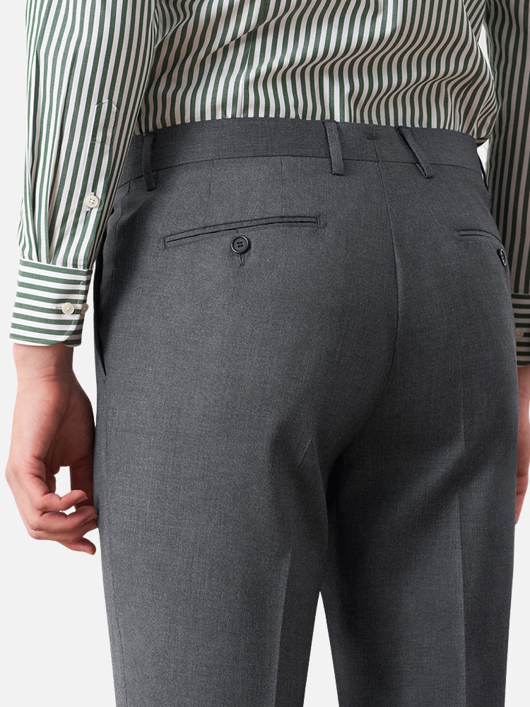 厳選した軽量ウール混紡素材を使用。程よいハリと快適な通気性で、アイロンいらずでも整った印象をキープ。スリムストレートのシルエットで、脚をきれいに見せスタイルアップします。