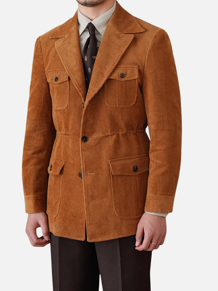 テーラードカラーの上品さにハンティングジャケットの機能性をプラス。ウエストのドローコードで着心地を調整しやすく、すっきりとしたシルエットに仕上げました。きちんと感とカジュアルさを程よく兼ね備えた、大人の都会スタイルです。