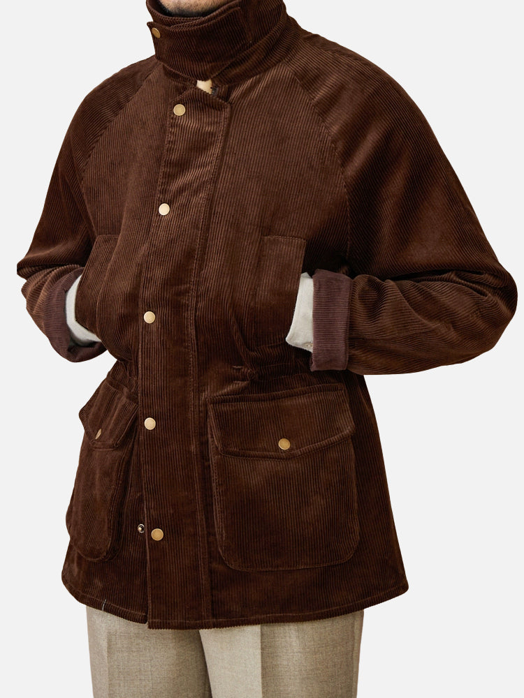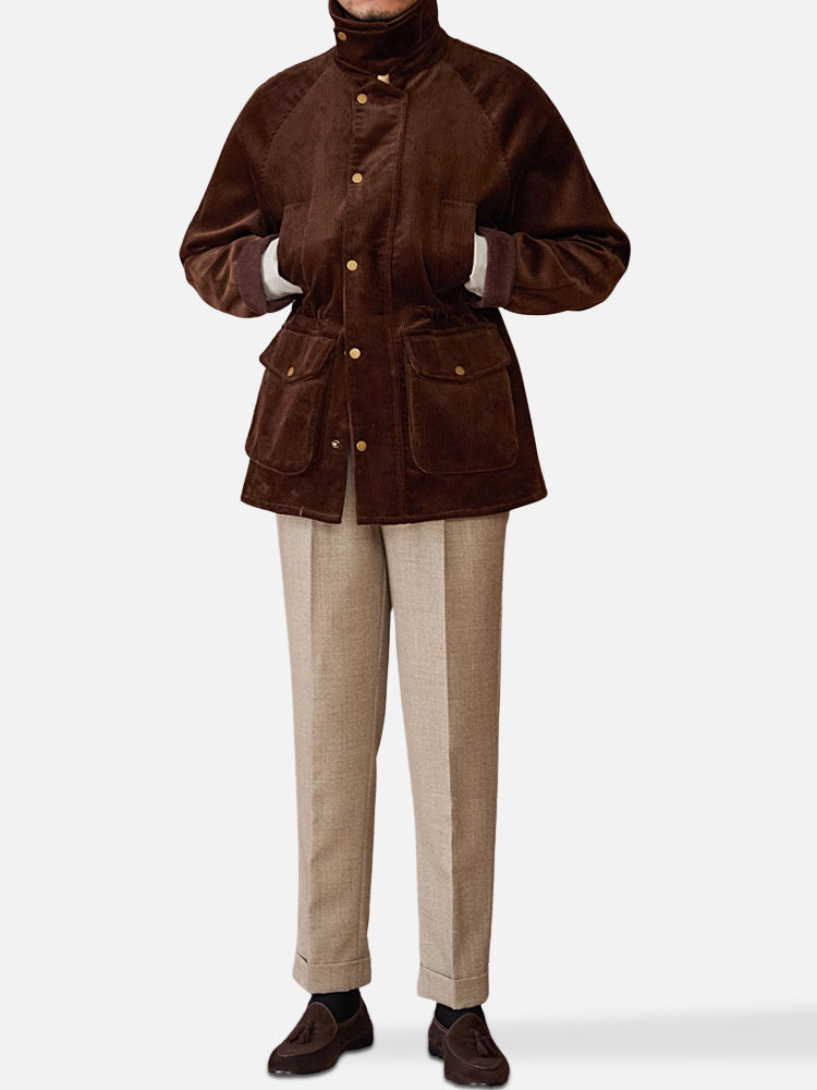 コーデュロイとコットンをブレンドした生地を使用し、暖かく通気性も良好。程よい厚みで蒸れにくく、秋冬に快適な一着です。