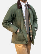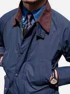細畝コーデュロイにスコットランドチェックの裏地を合わせた、ヴィンテージ感のある一着。袖口はロールアップ仕様で、さりげないアクセントを添えています。