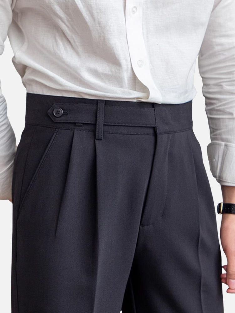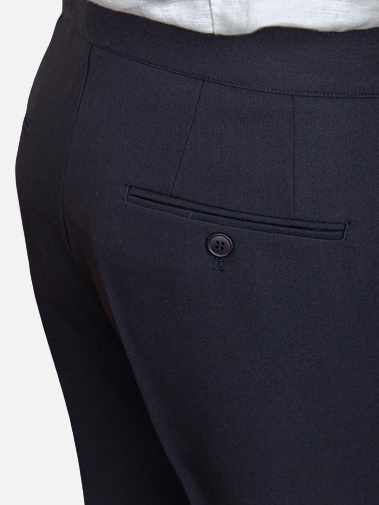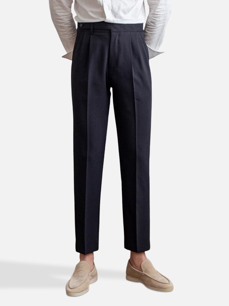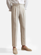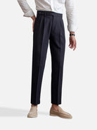 ナポリ仕立てをベースに、高めのウエストとツータックで快適なフィット感に。腰まわりにゆとりを持たせ、裾にかけて緩やかにテーパードさせることで、脚をすっきり見せます。都会的でこなれた雰囲気を漂わせる一本です。