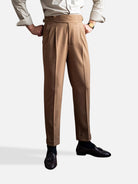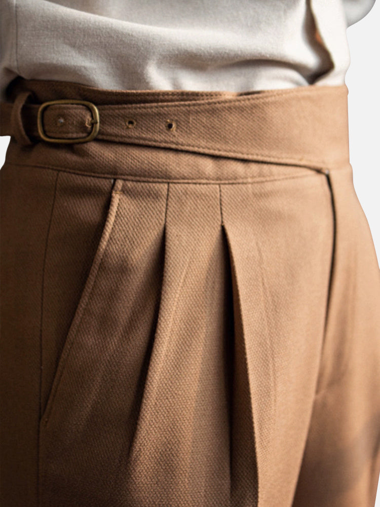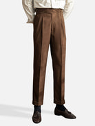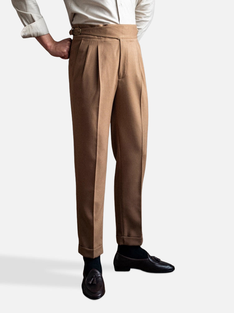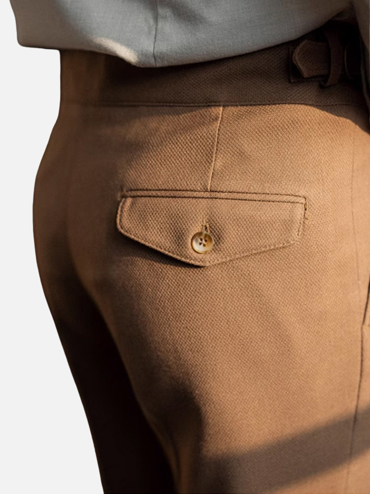ミニマルなラインに、斜め織りの起毛素材とヴィンテージ調カラーが調和し、落ち着いたこなれ感を演出。腰まわりにゆとりを持たせたテーパードシルエットで、自然とスマートな印象に。ポケット裏には薄手の裏地を配し、角の浮きを防ぐなど細部まで丁寧に仕上げました。ハイウエストのストレートフォルムが脚をすっきりと見せ、上品なシルエットを描きます。