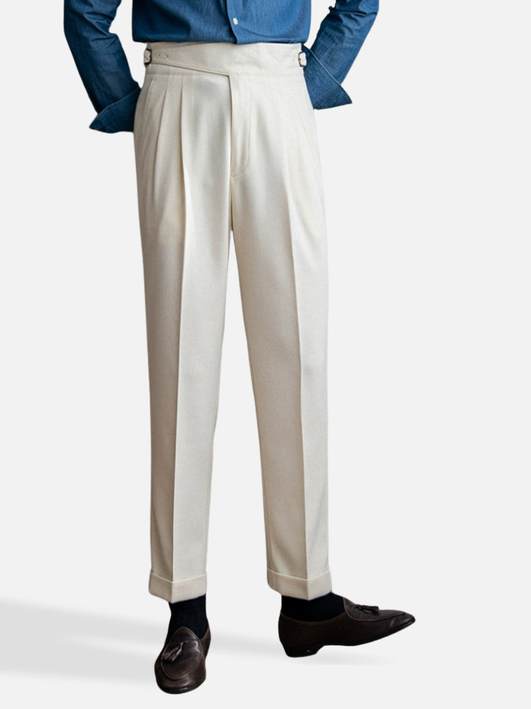 春秋ナポリ仕立てハイウエストストレートスラックス