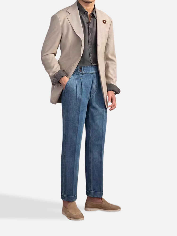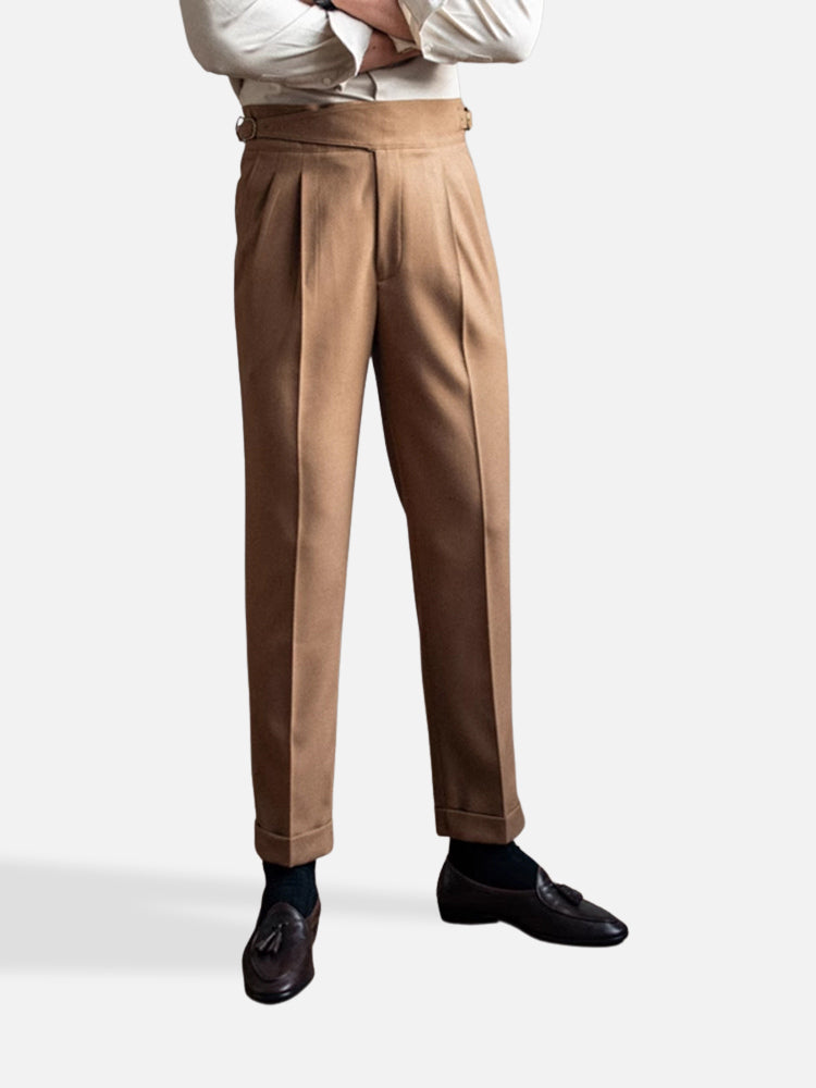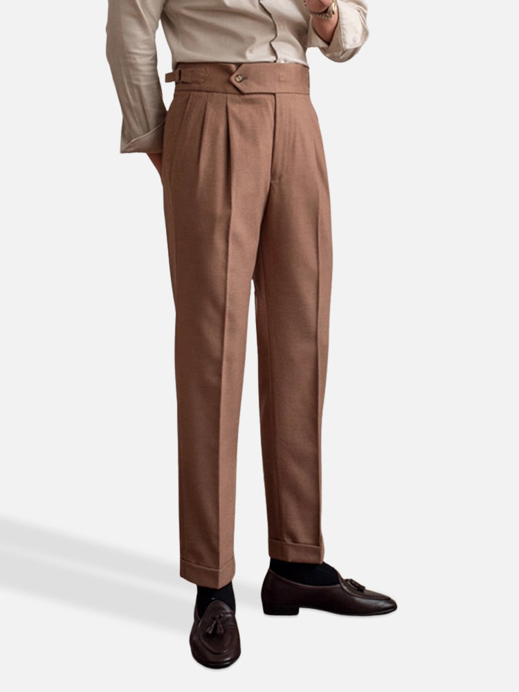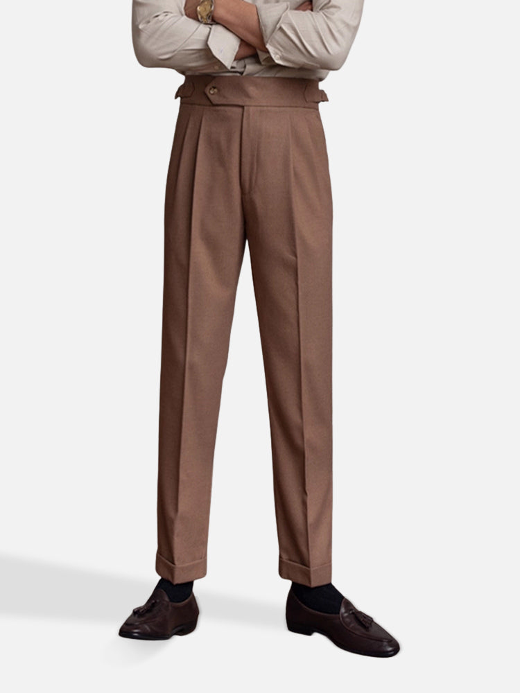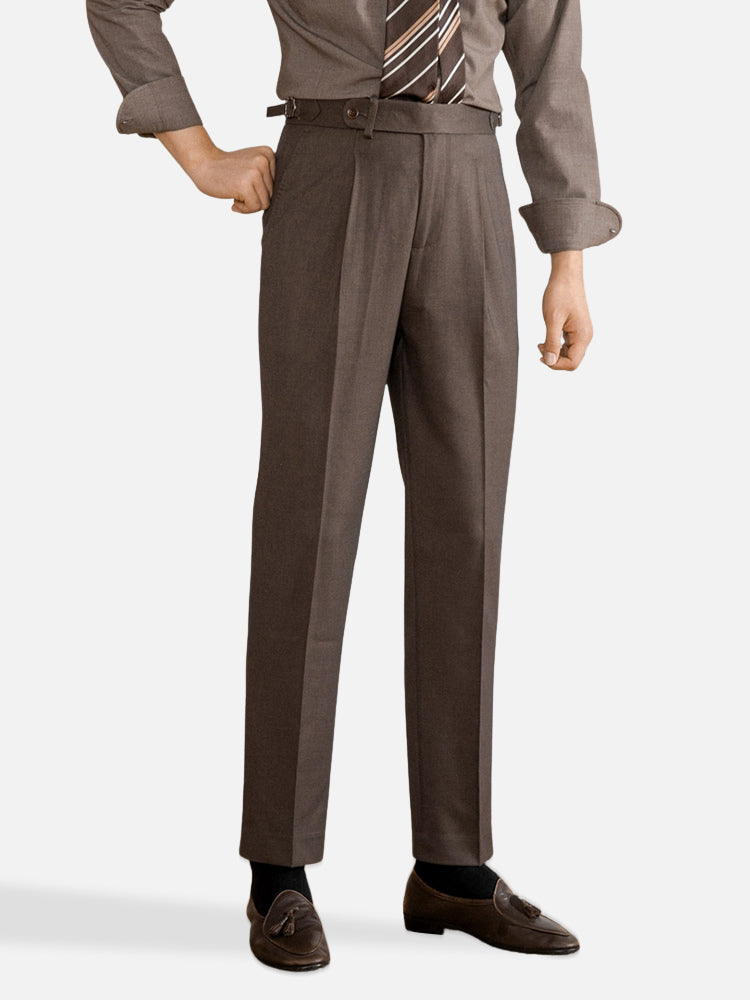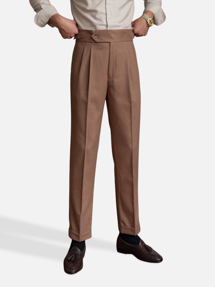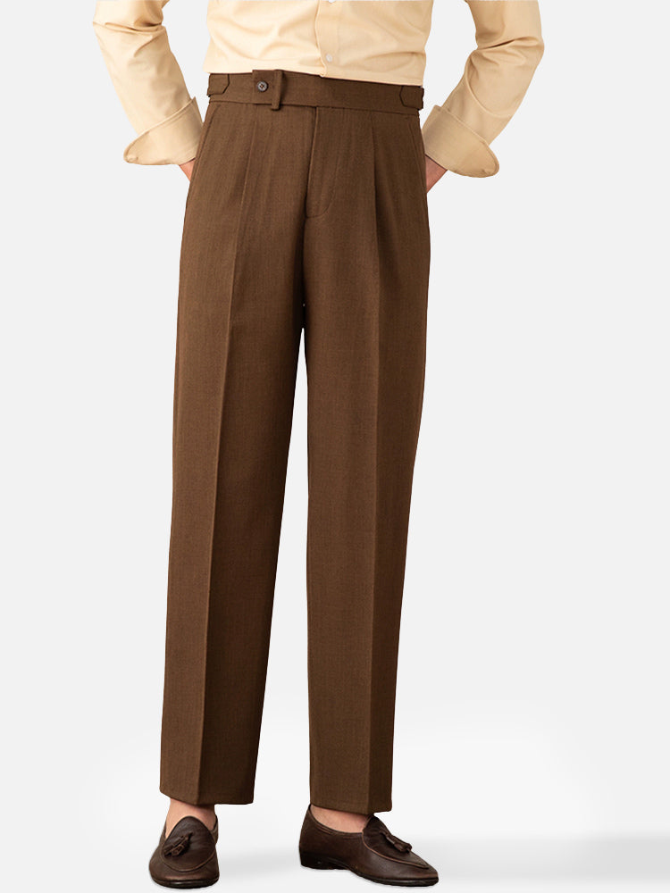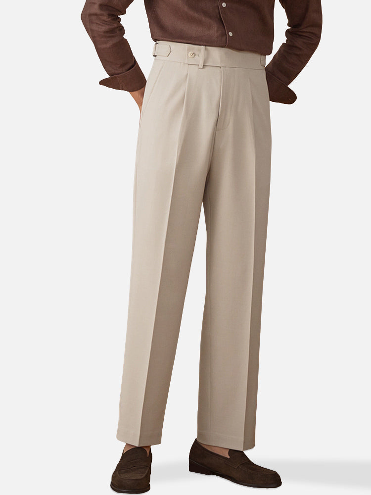 春秋ナポリ仕立てハイウエストメンズストレートパンツ