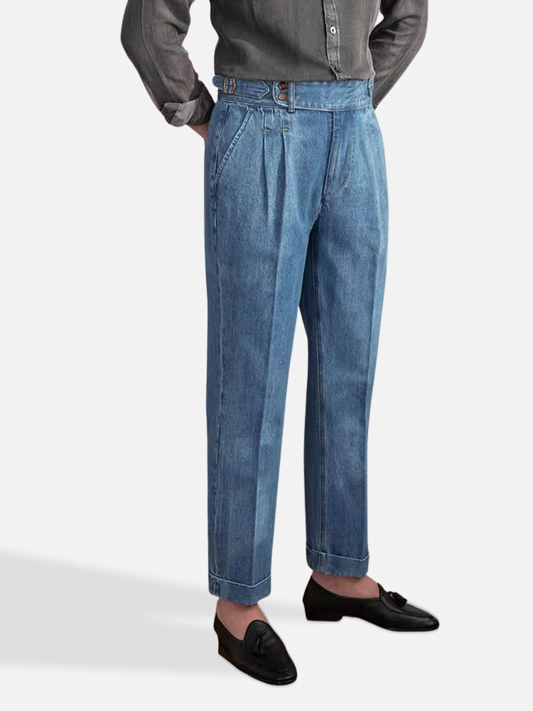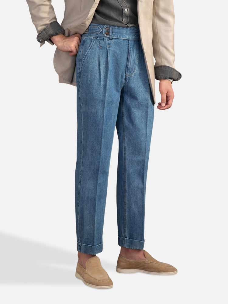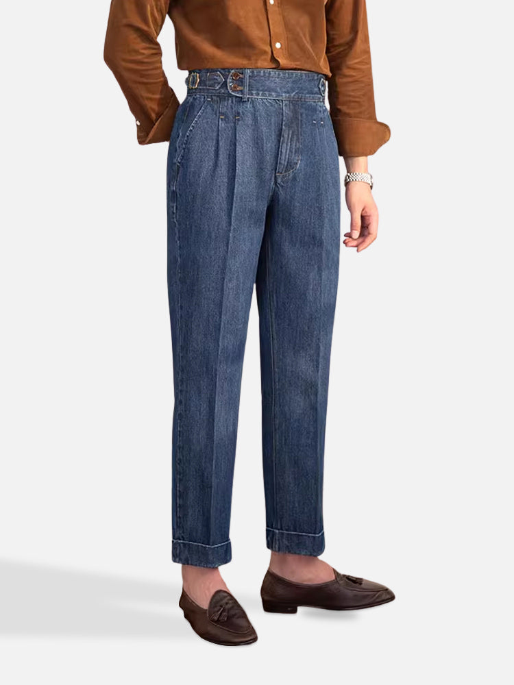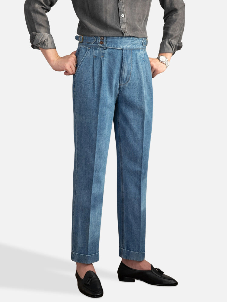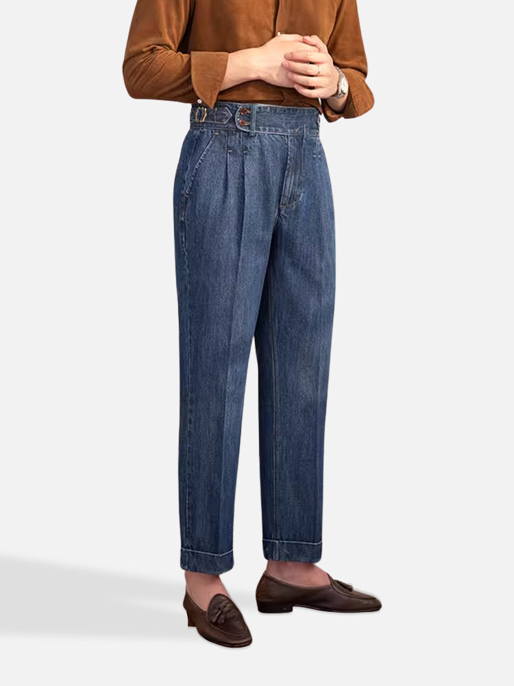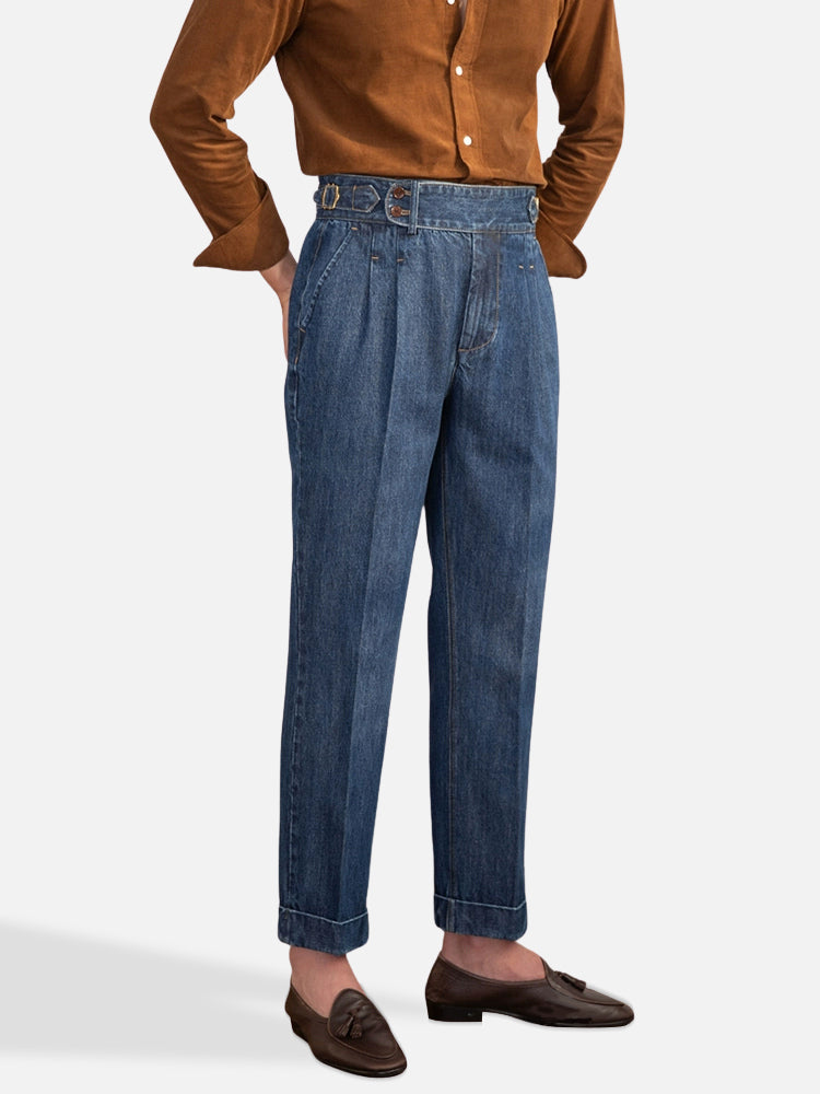 秋冬ヴィンテージ調ナポリ仕立てハイウエストストレートデニム