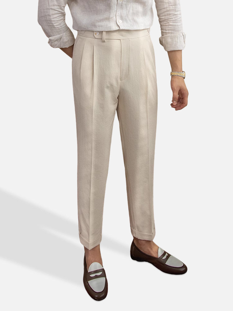 夏ヴィンテージ調ナポリ仕立てハイウエストスラックス