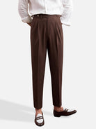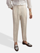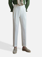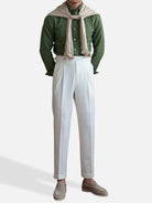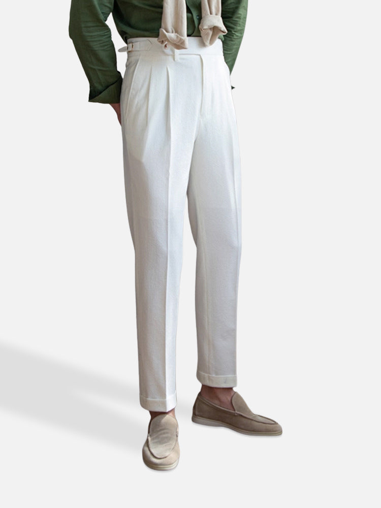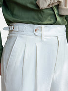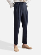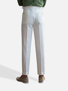ナポリ仕立てのシャープなラインとバランスで、上品さと実用性を兼備。ミッドハイウエストが脚を長く見せ、すっきりとした印象に。程よく絞ったウエストで快適なはき心地です。