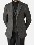深灰や黒のヘリンボーン、ツイードパンツでヴィンテージなビジネススタイルに。白シャツやハイネックニットを合わせれば、シーンに応じて実用的かつ洗練された着こなしが楽しめます。