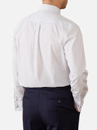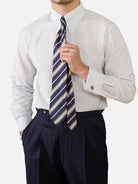 ブルー×ホワイト ストライプ ワイドスプレッド フレンチカフスシャツ