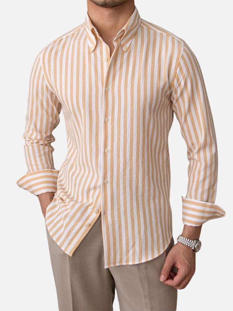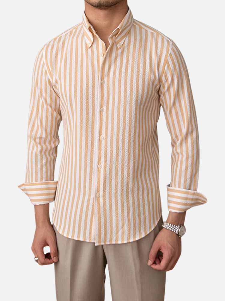 ワイドスプレッド シアサッカー ストライプ ノンアイロンシャツ