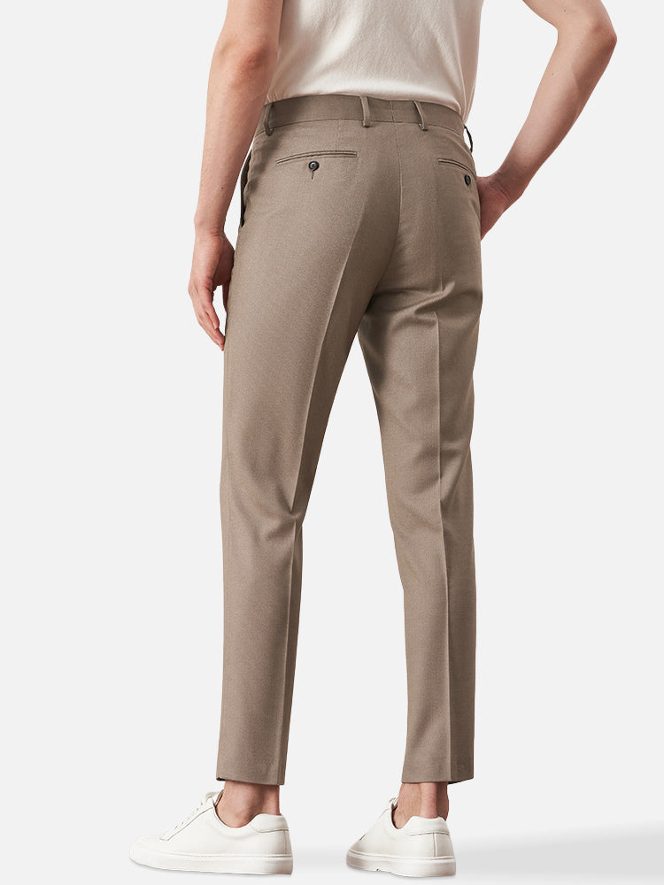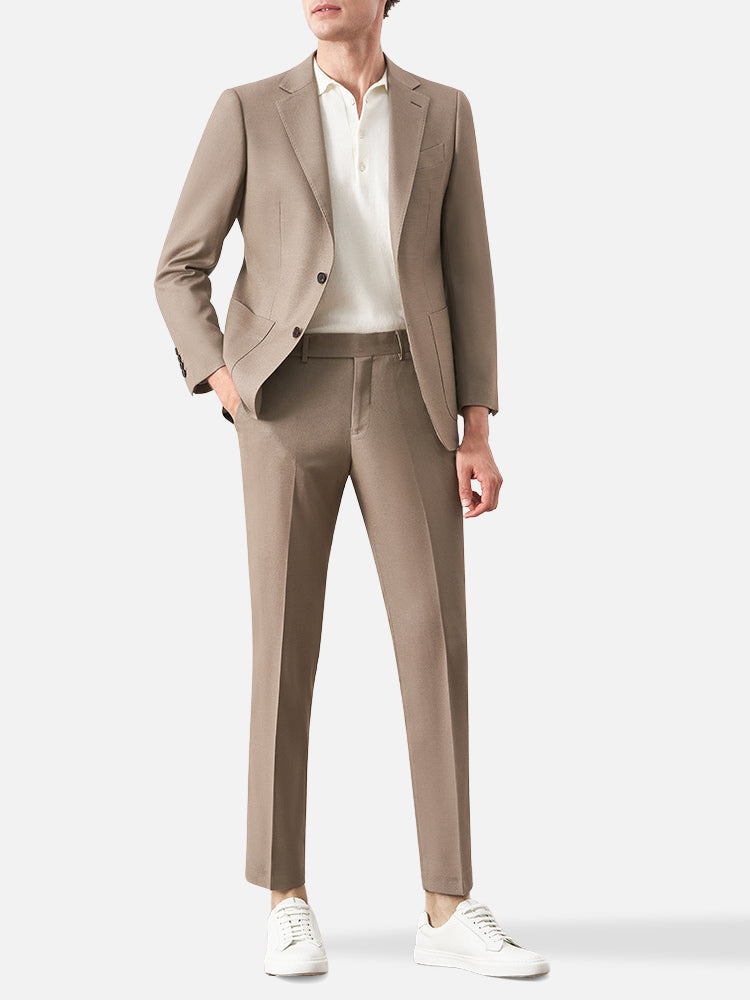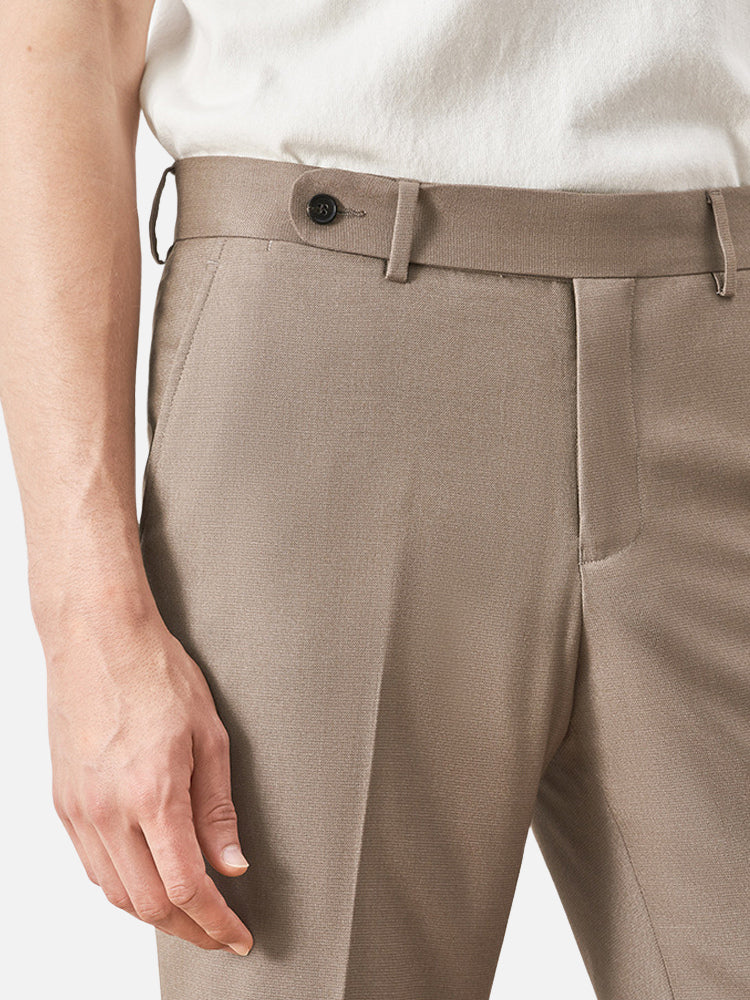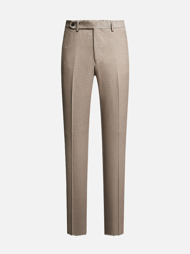 表面にさりげないテクスチャーを持ち、上品な雰囲気を漂わせる生地。程よいストレッチ性で動きやすく、長時間の着用でもシルエットを美しく保ちます。