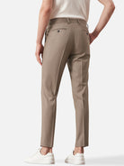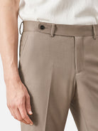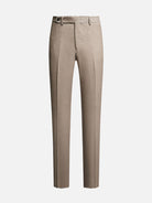 スリムカットで脚に沿うすっきりとしたシルエット。適度に絞ったレッグラインがシャープな印象を与えます。ウエストのVスリットで前部の緩みを防ぎ、バックベントで動きやすさも確保。YKKメタルファスナーと水牛ボタン、精巧なベルトループが質感と耐久性を支えます。