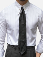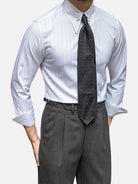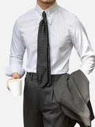 イタリアンカッティングをベースにしたスリムフィット。シャープなセミワイドカラーとダークチェックが、クラシックでありながらモダンな印象を演出します。背面のアクションプリーツで動きやすく、胸のパッチポケットがさりげないアクセントに。ビジネスからカジュアルまで幅広く活躍します。
