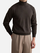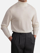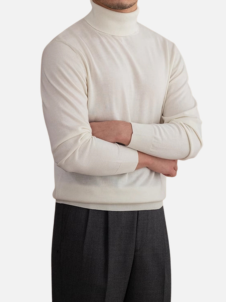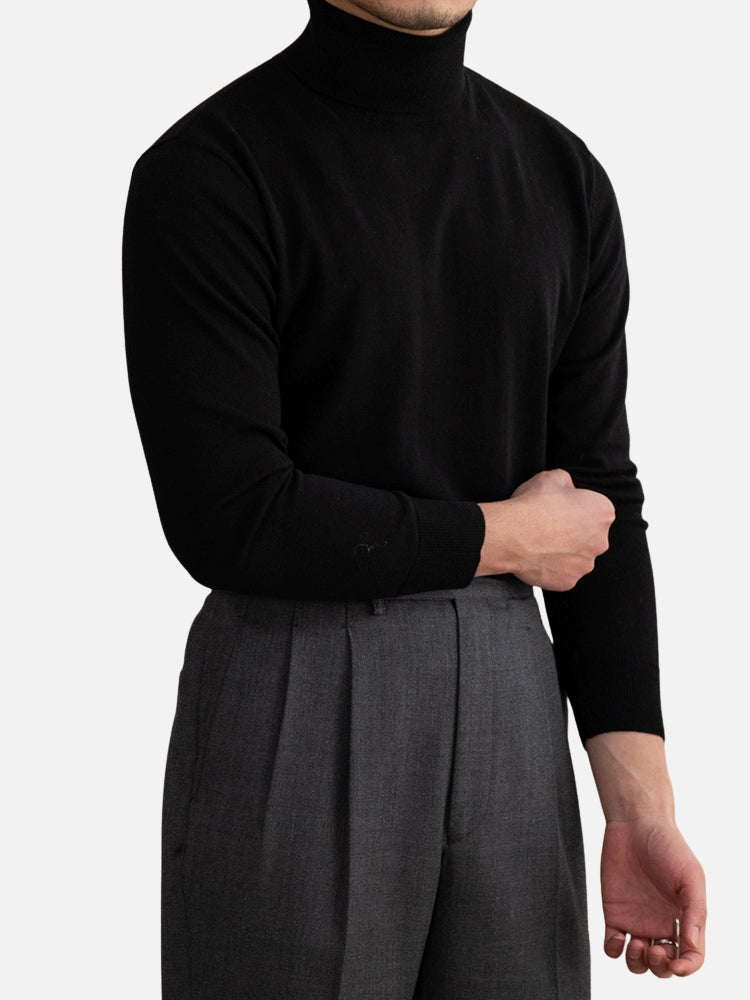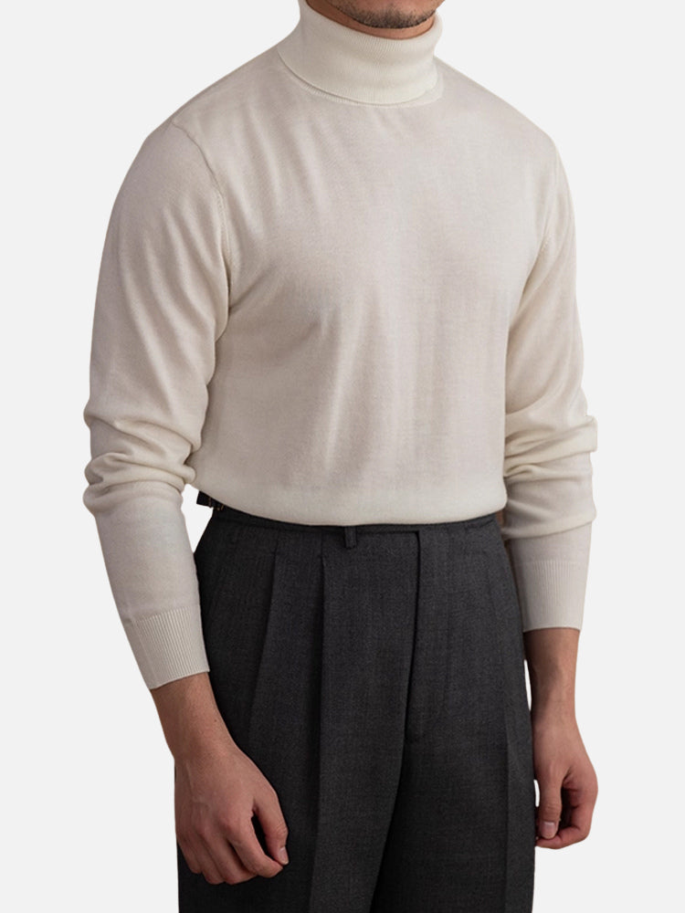 ミニマルな美学を基調としたスリムフィットのタートルネックニット。立体的なリブ編みが視覚的にすっきりとした印象を与え、高い保温性と首元を美しく見せるデザインを両立。身体に程よくフィットし、単品でも重ね着でも使いやすく、通勤や普段使いに最適です。