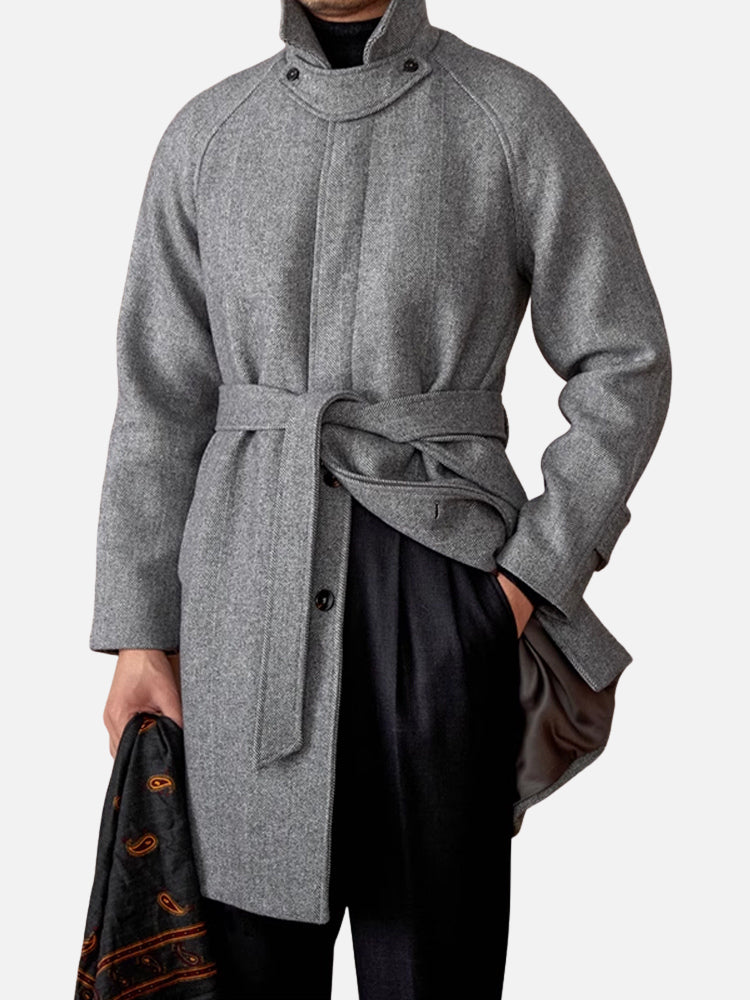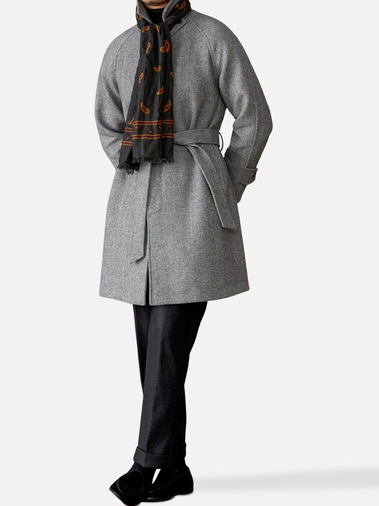 100% ウール ミドル丈 千鳥格子 バルマカーンコート