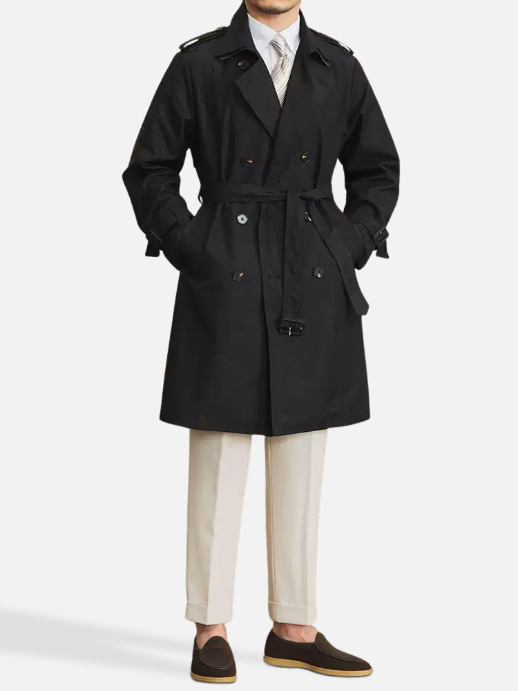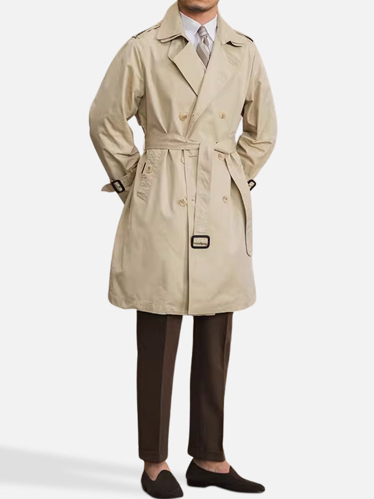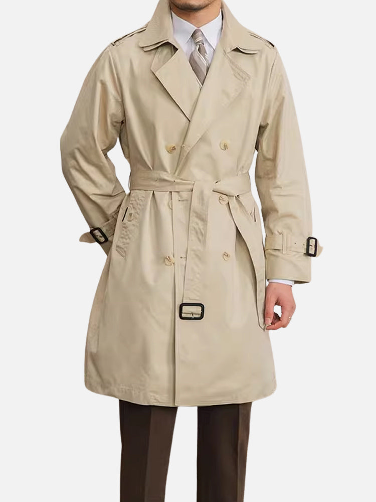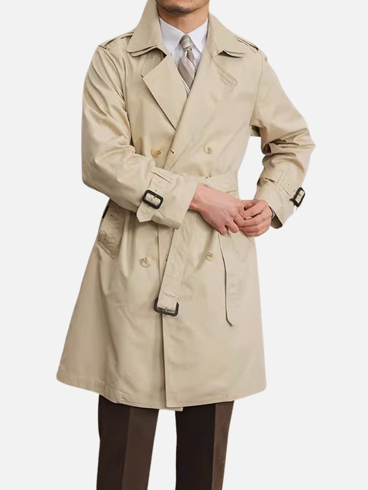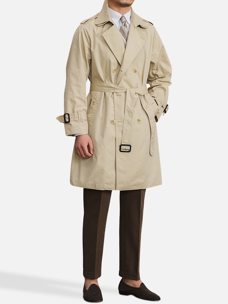 ビジネス ミドル丈 カジュアル ダブルブレスト 無地 トレンチコート