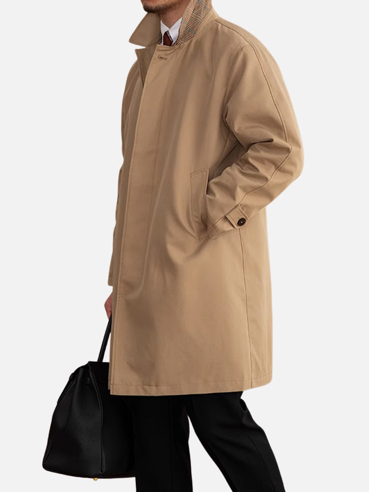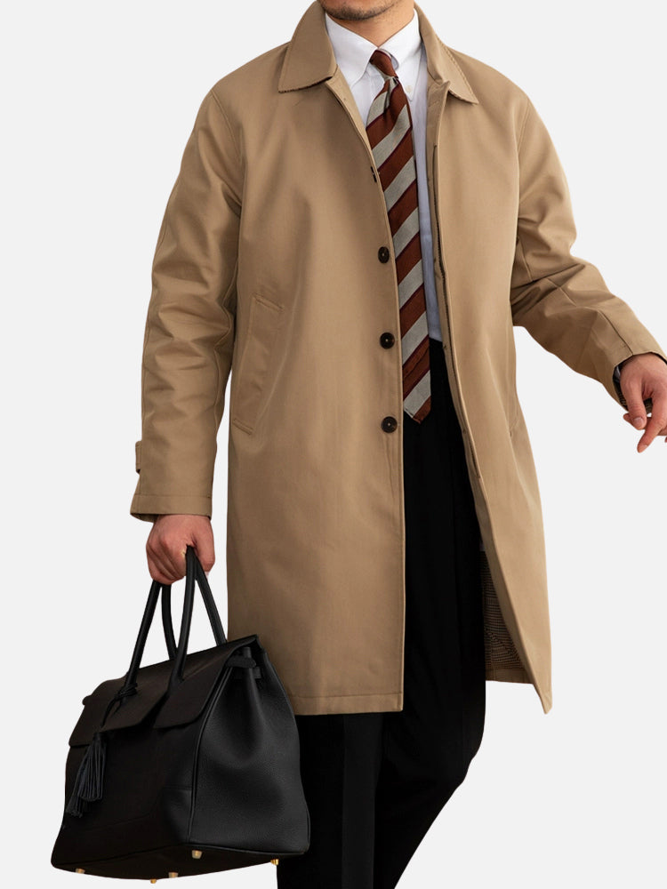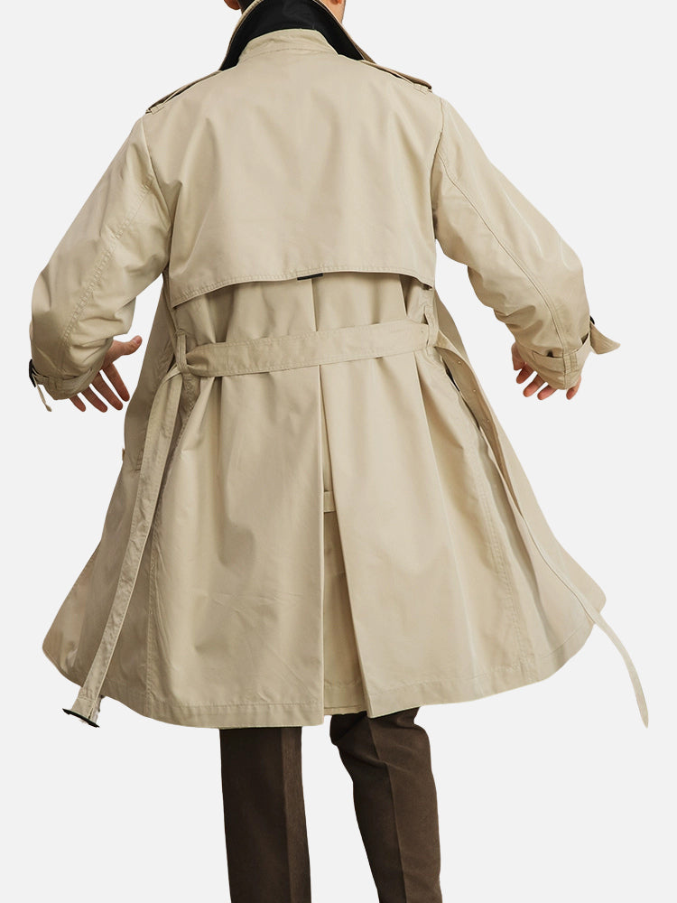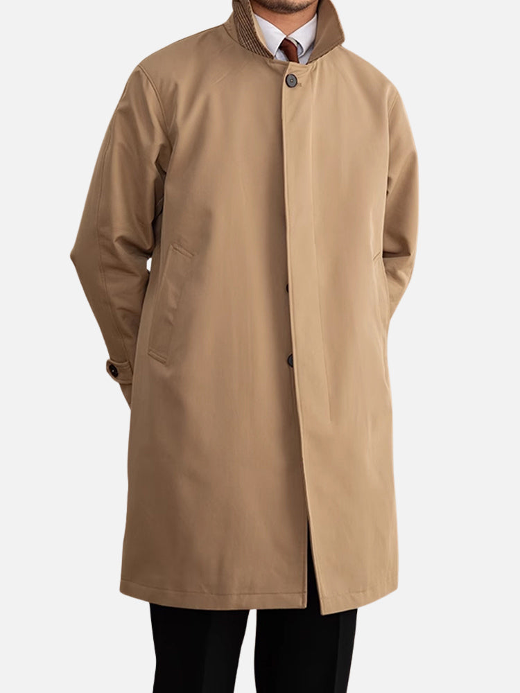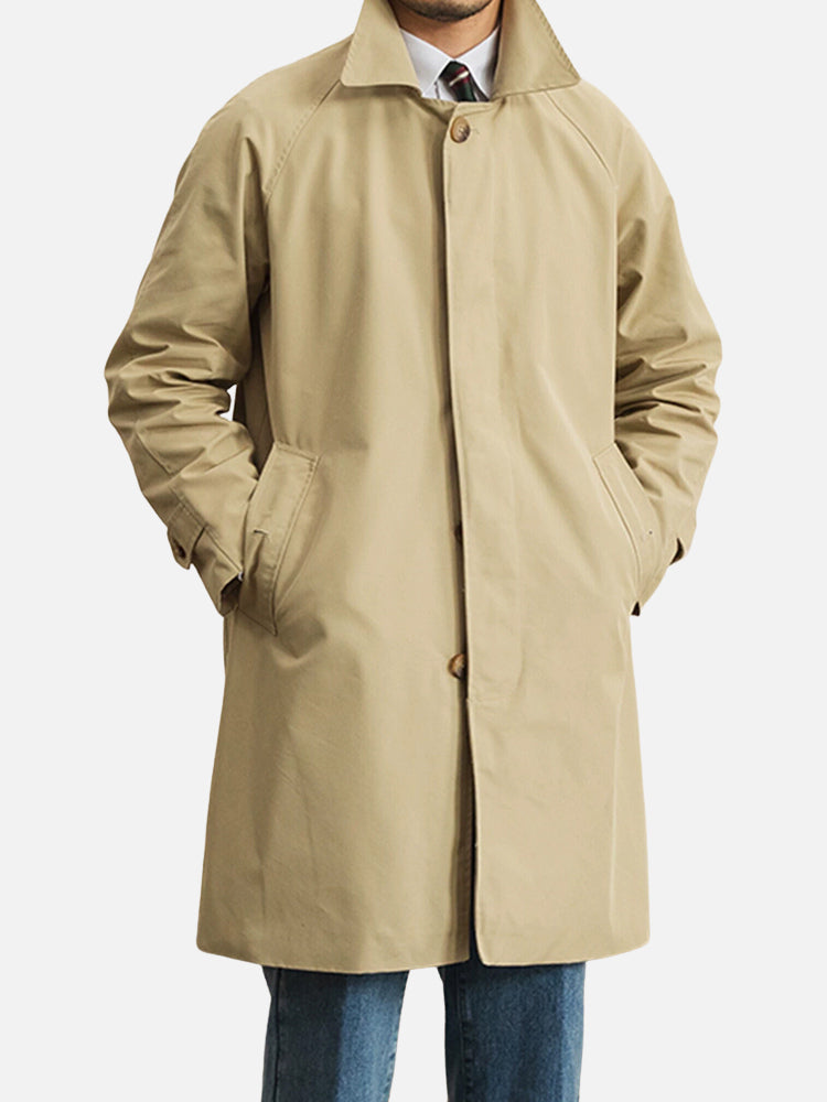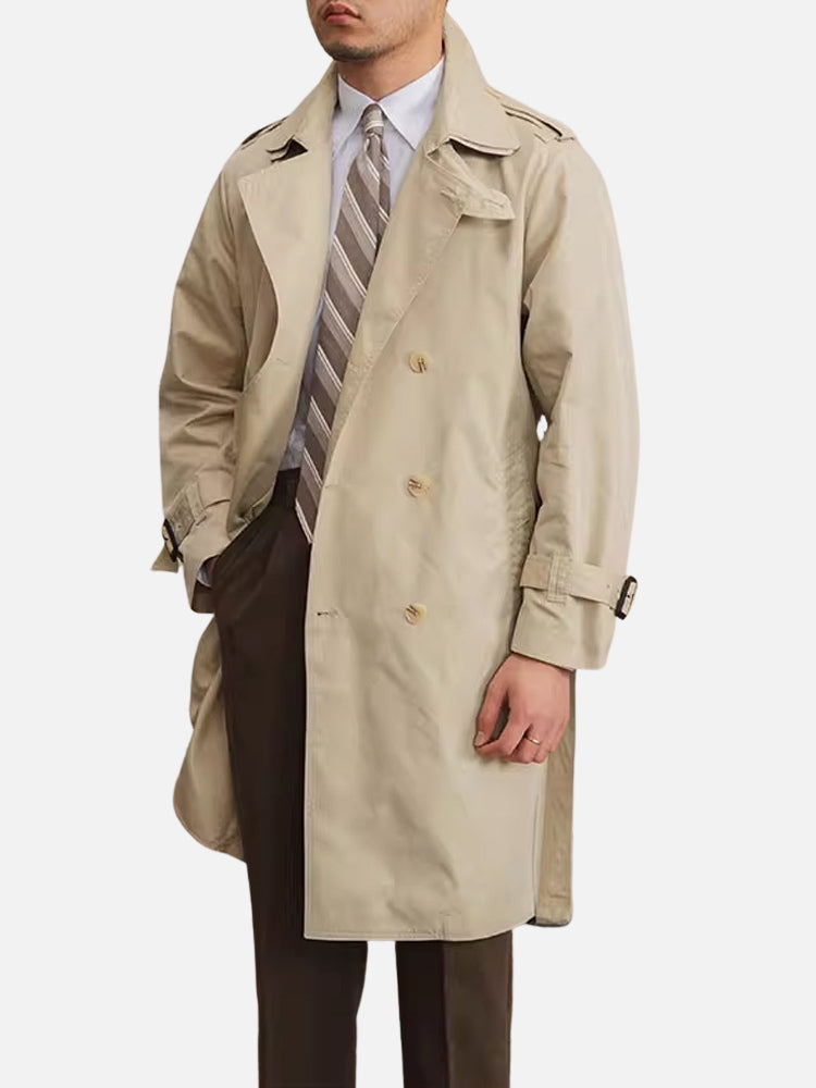 ビジネス ミドル丈 カジュアル ダブルブレスト 無地 トレンチコート