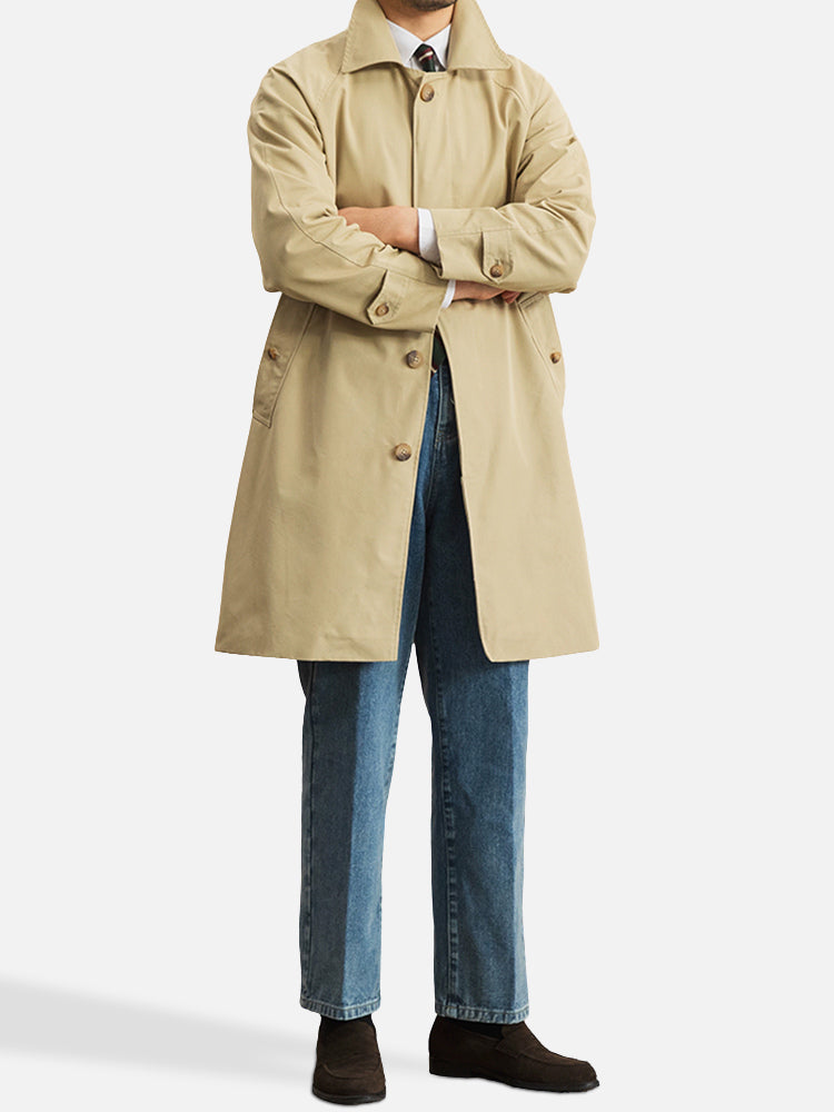 ヴィンテージ 切り替え 襟付き ミドル丈 トレンチコート イタリアン シングルボタン