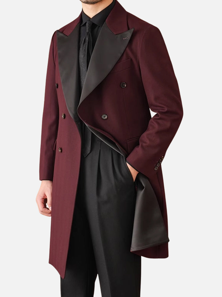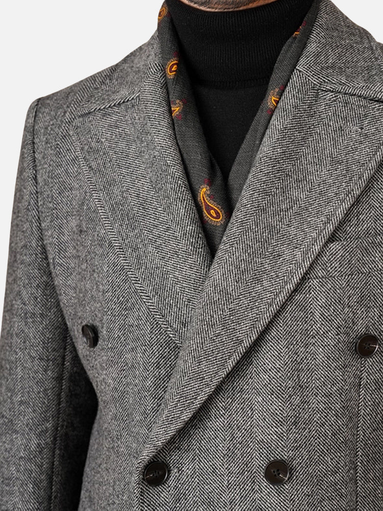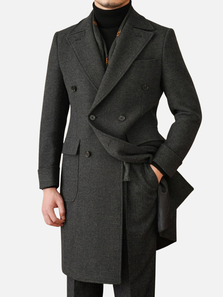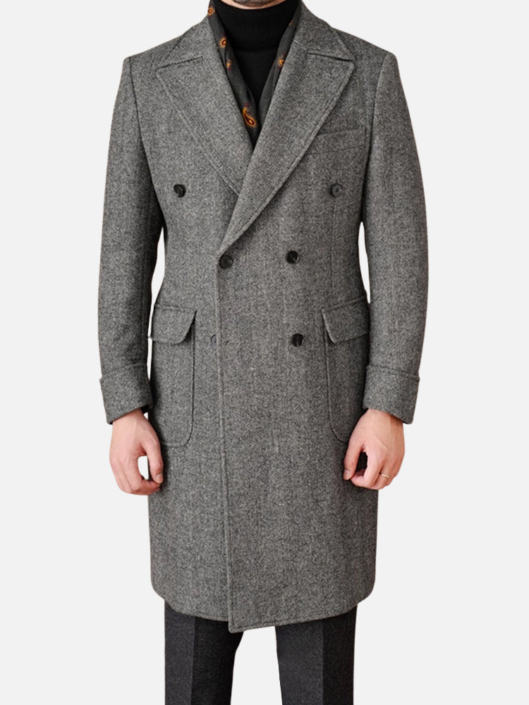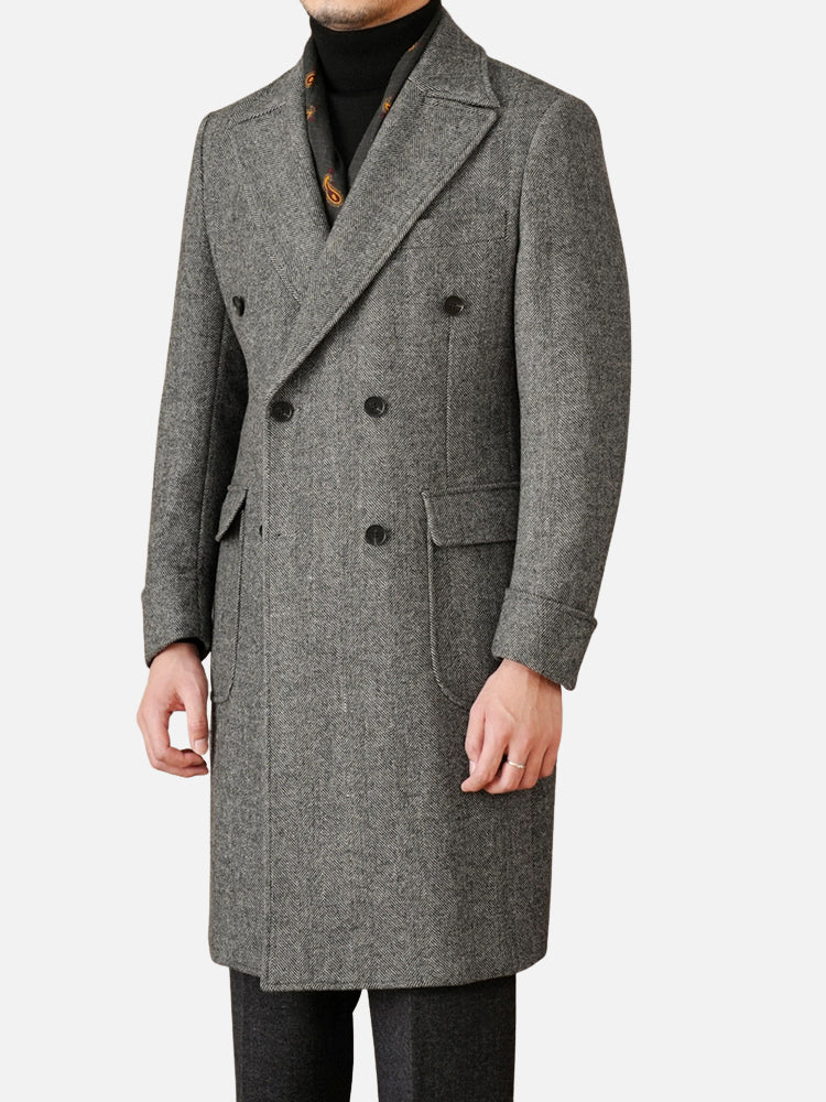 ビジネス ヴィンテージ チェック ダブルブレスト ミドル丈 コート