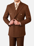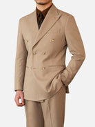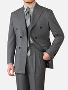 9〜11cmのピークドラペルが端正なラインを描き、落ち着きと自信を感じさせます。チケットポケットとフラップがアクセントになり、スリムなカッティングがアジア体型に自然にフィット。背面のサイドベンツで動きやすく、ダブルブレストの程よい存在感がオン・オフ問わず活躍します。