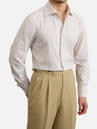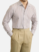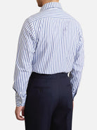 コットン ワンピースカラー ストライプ スリムシャツ