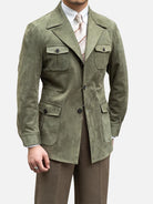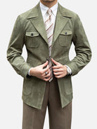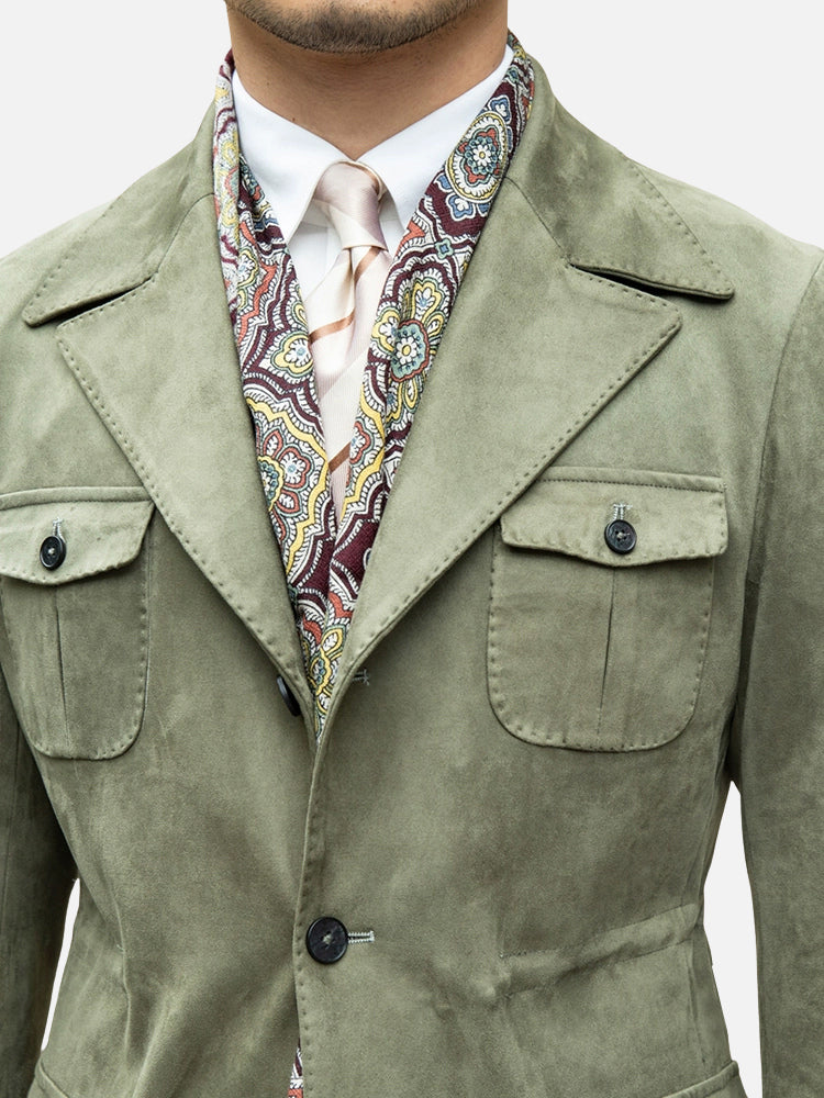 上質なフェイクスエード素材を使用し、やわらかな風合いとなめらかな肌ざわりが魅力。自然な微光沢があり、シワになりにくくお手入れも簡単。上品さとあたたかさを兼ね備えた一着です。