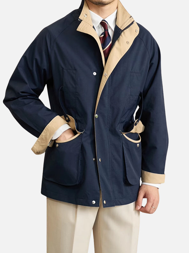 紳士用 多ポケット ドローコードウエスト調節 ヴィンテージハンティングジャケット