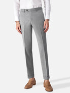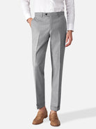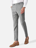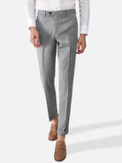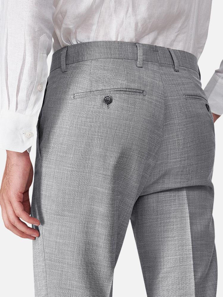 シルバーグレーのパンツは白やライトブルーのシャツで爽やかに。ジャケットでフォーマルにも、ニットポロやリネンシャツで軽快カジュアルにも対応。