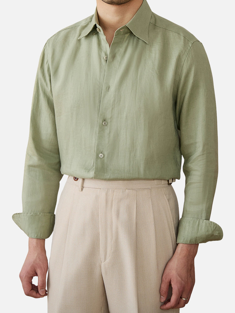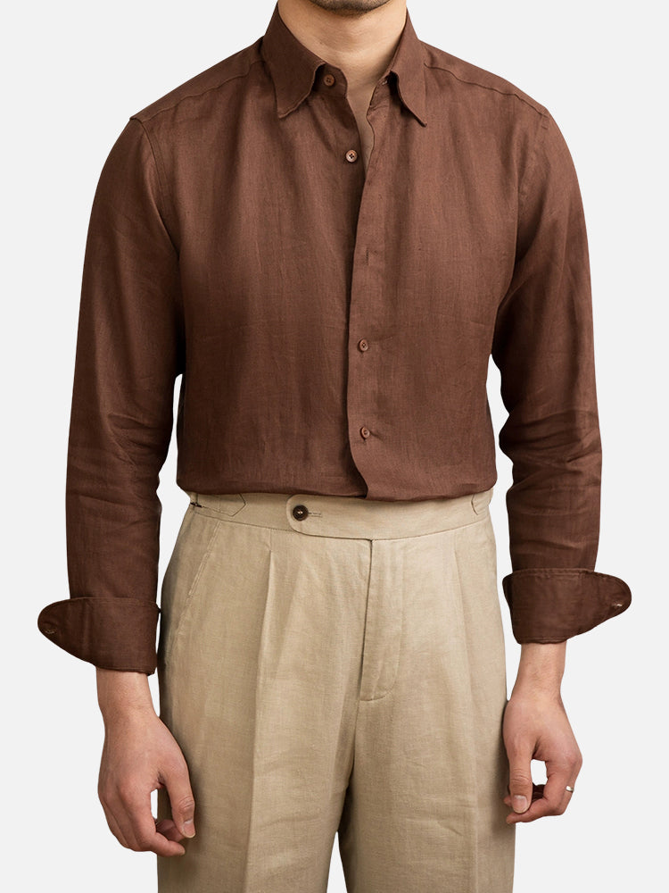 100%天然リネンを洗い加工で柔らかな肌触りに。自然なシワ感がヴィンテージ風を引き立て、通気性・吸湿性・抗菌性に優れ、夏も快適です。