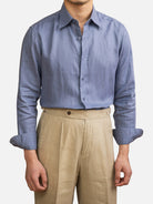 程よいハリと柔らかさを備えたシャツ。立体的でゆったりとしたシルエットに脇下の切り替えと弧形の裾を加え、快適さと動きやすさを実現。シャープな襟と隠しボタンが首元を整え、控えめなディテールで洗練されたヴィンテージ感を演出します。リラックス感のあるシルエットが上品さを漂わせます。