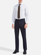 フロントに入れたプリーツがドレープと立体感を生み、美しいシルエットをキープ。スリムテーパードと立体裁断で脚のラインをすっきり整え、ヒップからウエストまで自然にフィット。後ろウエストの可動域と滑り止め仕様で快適さをプラスし、YKKメタルファスナーや精緻なベルトループなど細部までこだわりました。