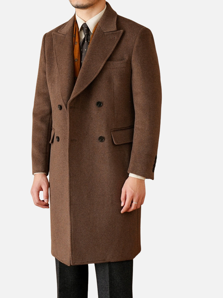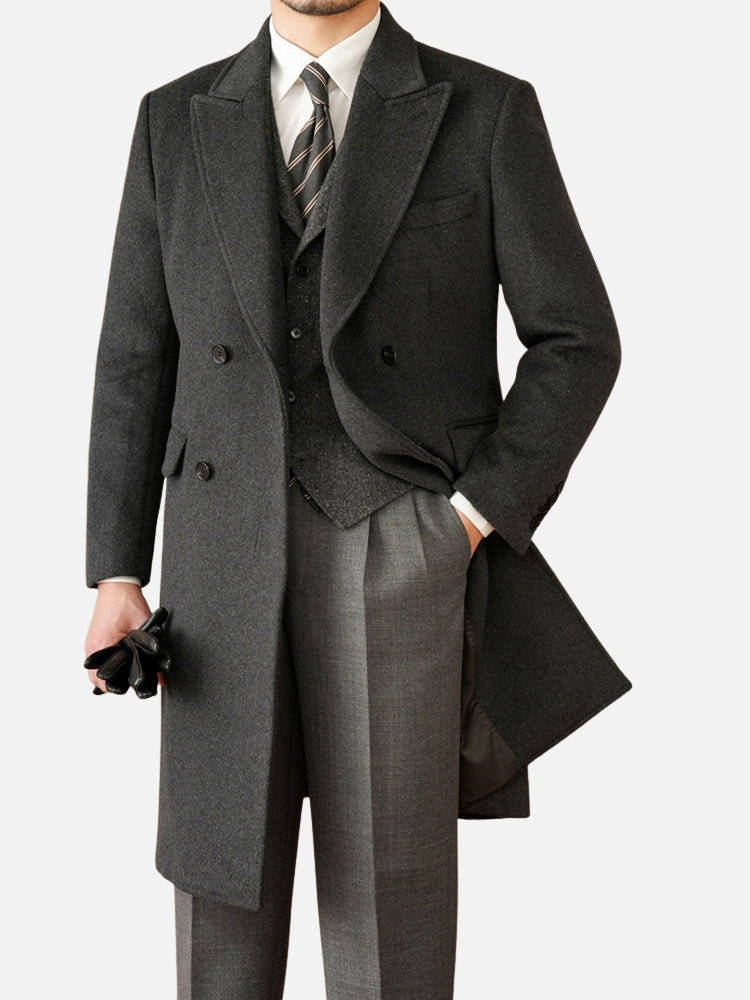 英国紳士の礼服に着想を得て、現代的なスリムフィットを掛け合わせています。程よいハリ感で動きやすさも確保し、ノッチドラペルが首元と肩のラインを引き立てます。ダブルブレストが品格とバランスを添え、自信に満ちた紳士像を演出します。